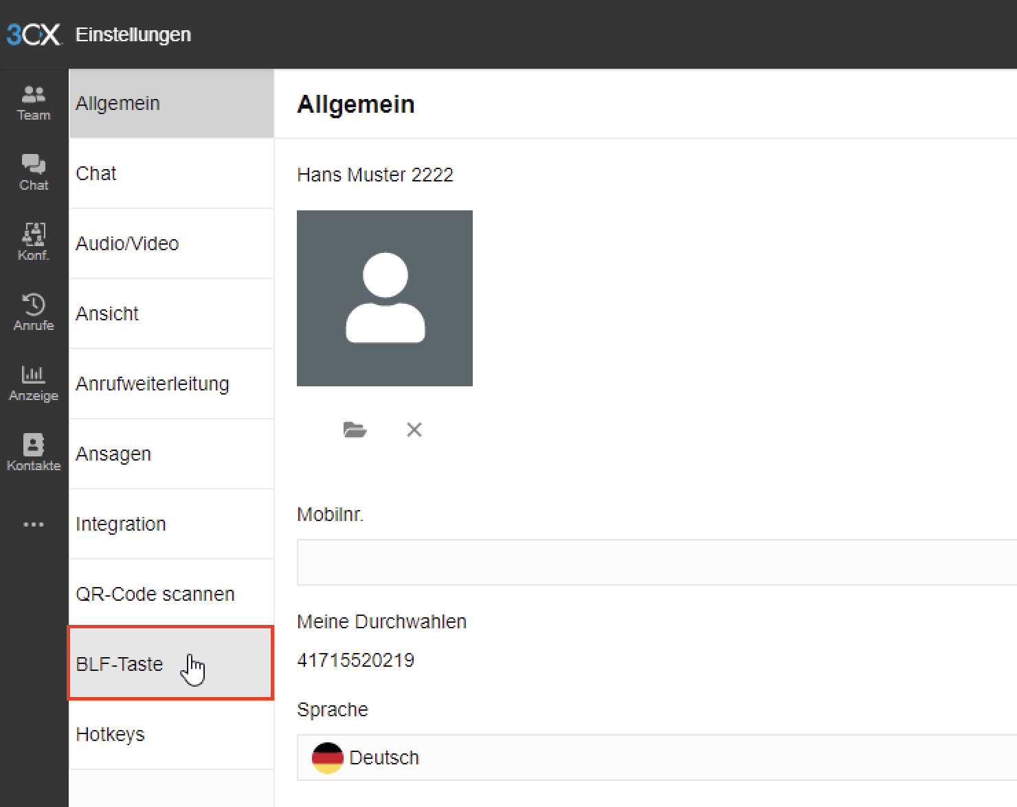 Unter dem Menüpunkt "Einstellungen" navigieren Sie zum Menüpunkt "BLF-Taste"