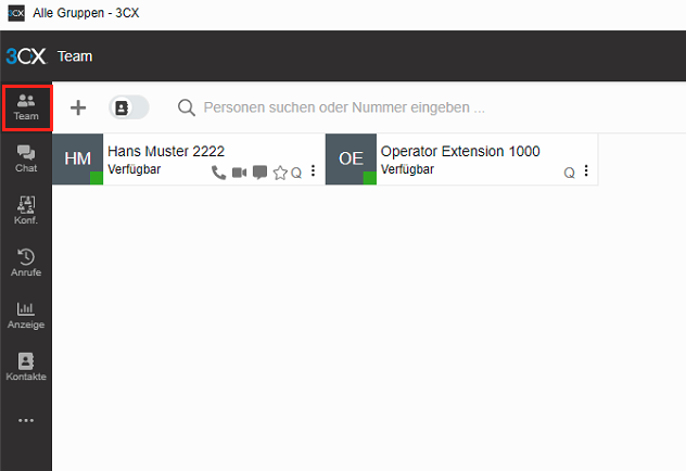 Suchen Sie in der Team-Übersicht vom 3cx Desktop App nach dem Benutzer, der geändert werden muss: