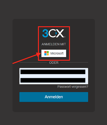 Sie werden nun auf die Webseite der Telefonanlage weitergeleitet. Klicken Sie erneut auf den Button Microsoft 365.