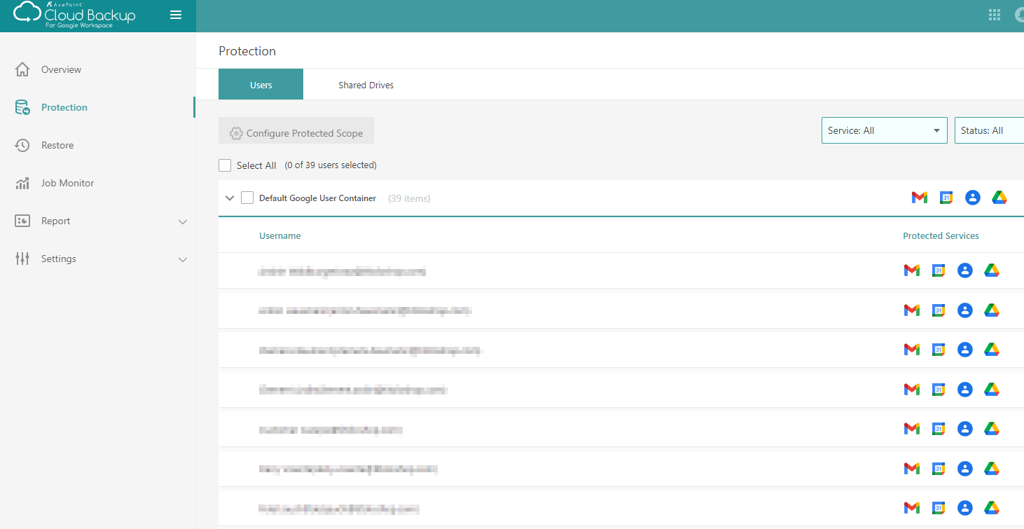 Unter "Protection" sehen Sie eine Auflistung der gesicherten User Ihrer Organisation: