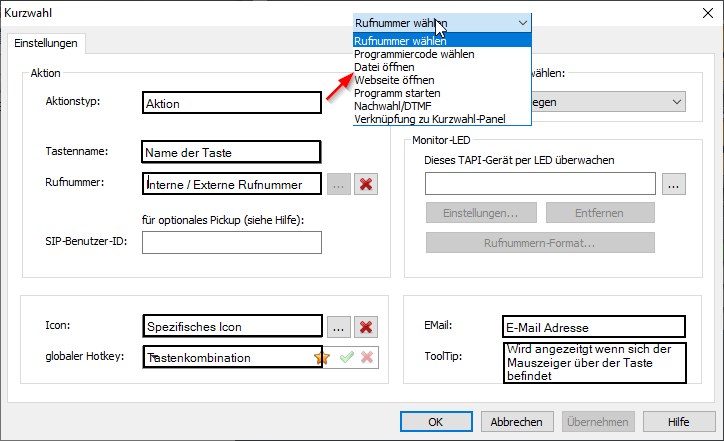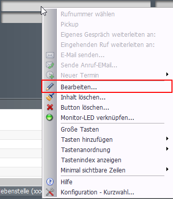 Um eine BLF-Taste (Kurzwahl mit Präsenzstatus) zu konfigurieren muss mit der rechten Maustaste auf eine Taste geklickt werden und "bearbeiten" ausgewählt werden: