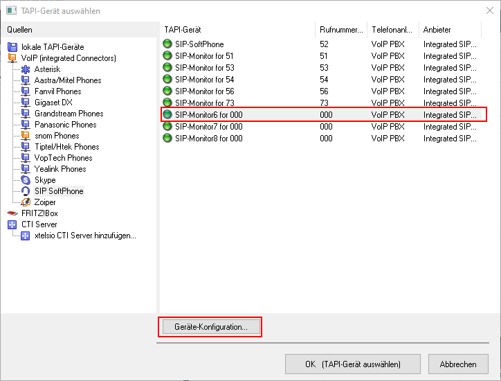 Wählen Sie unter SIP SoftPhone einen freien Monitor aus: