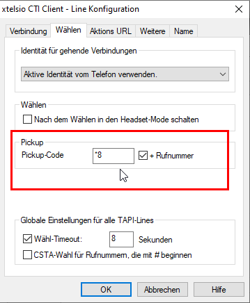 2. Unter dem Reiter "Wählen" den Pickup-Code definieren: