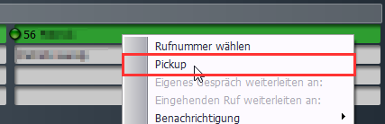 Der Anruf kann nun per Rechtsklick auf die Kurzwahltaste --> Pickup übernommen werden: