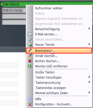 3. Die Kurzwahltaste per Rechtsklick bearbeiten: