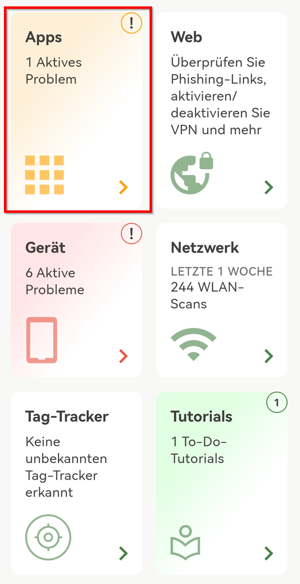 1 Öffnen Sie "Apps" auf der Bitdefender App für eine Übersicht der Sicherheitsrisiken der installierten Apps
