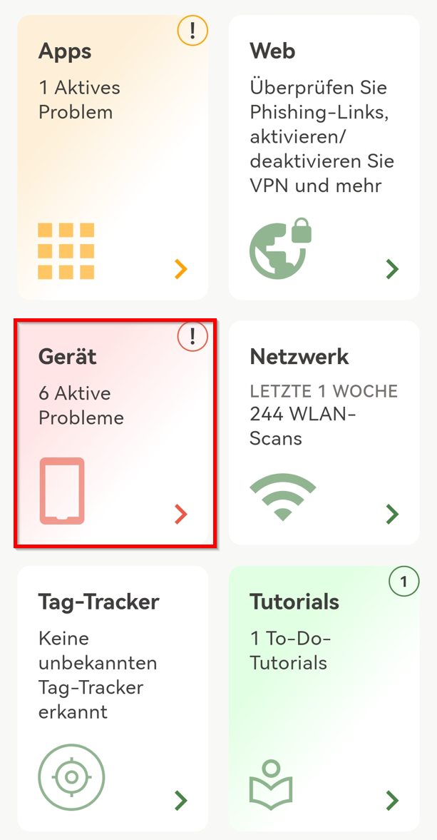 1 Klicken Sie auf "Gerät" um einen Überblick über die Sicherheitsrisiken des Geräts zu erhalten.