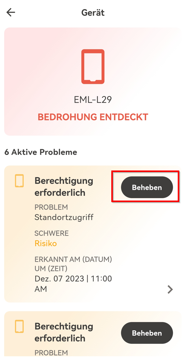 2 Die Sicherheitsrisiken des Geräts werden einzeln aufgeführt und jedes Risiko kann und sollte einzeln behoben werden.