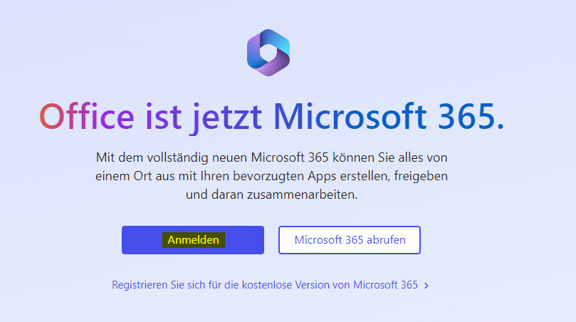 Öffnen Sie die Webseite https://office.com und klicken Sie auf den Button "Anmelden"