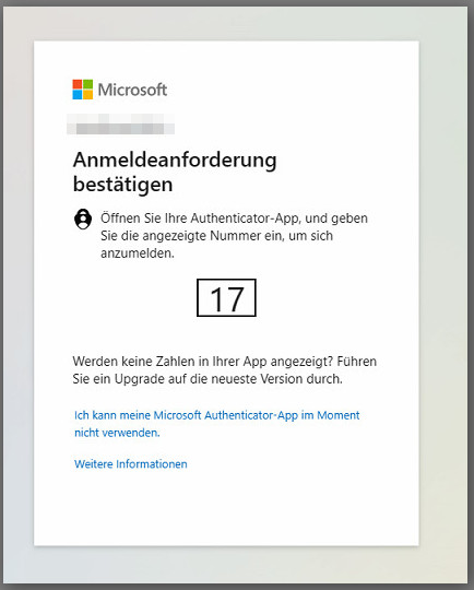 Geben sie den angezeigten Code in der Authenticator App auf ihrem Smartphone ein.