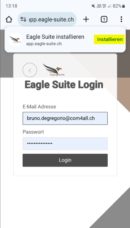 Öffnen Sie anschliessend die Webseite https://app.eagle-suite.ch .