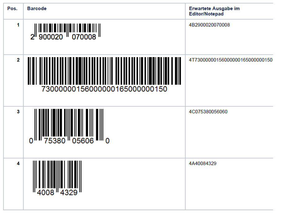 Nach Programmieren des Scanners sollte folgendes an den Strichcode angefügt werden.