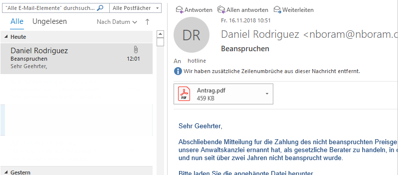 2 Markieren Sie die Email sodass diese im rechten Fenster im Outlook angezeigt wird