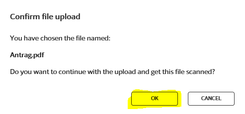 Bevor die Datei nun auf virustotal.com raufgeladen wird erscheint eventuell noch ein Bestätigungs-fenster. Hier klicken Sie auf «OK»: