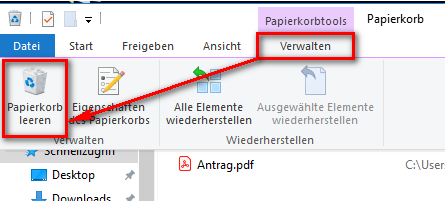 Leeren Sie den Inhalt des Papierkorbs auf dem Desktop: